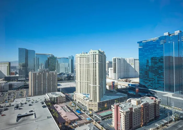 No Resort Fee Strip View Balcony+Free Valet+ Pool fica a 16 minutos andando de The Cosmopolitan Resort & Casino e a 21 minutos de distância de CityCenter de Las Vegas. A pousada tem 1 quartos e cozinha totalmente equipada que fornece microondas, chaleira elétrica e refrigerador aos hóspedes.